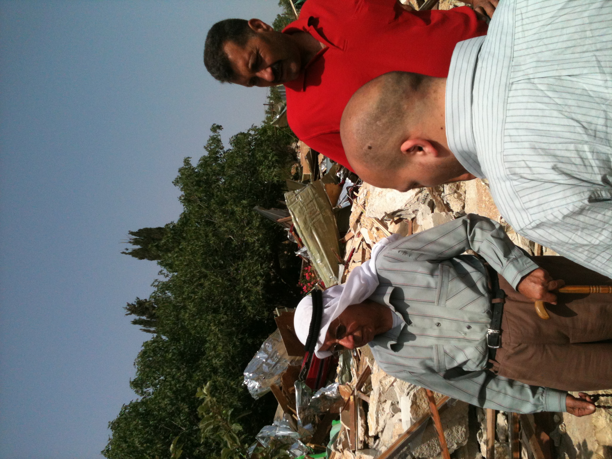 An anecdote: The tractors are usually drive by Palestinians (the Separation Wall and many settlements were built by Palestinians, also), which indicates all sorts of things about the power of capitalism/the complete economic decimation brought on by occupation. As the drivers were leaving the site, our group passed. Some of the Palestinians in our group began yelling at the drivers, asking them how they could do such a thing to their own people, et cetera. The first driver, grinned, shrugged, and rubbed his thumb and fingers together in the universal gesture for “money.” Then the second driver passed: his face was buried in his arms, on the top of the steering wheel.