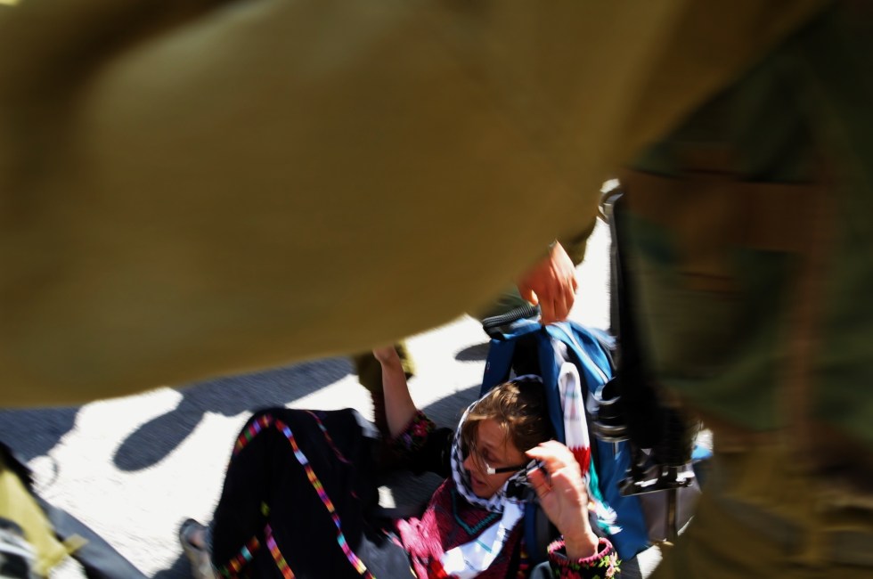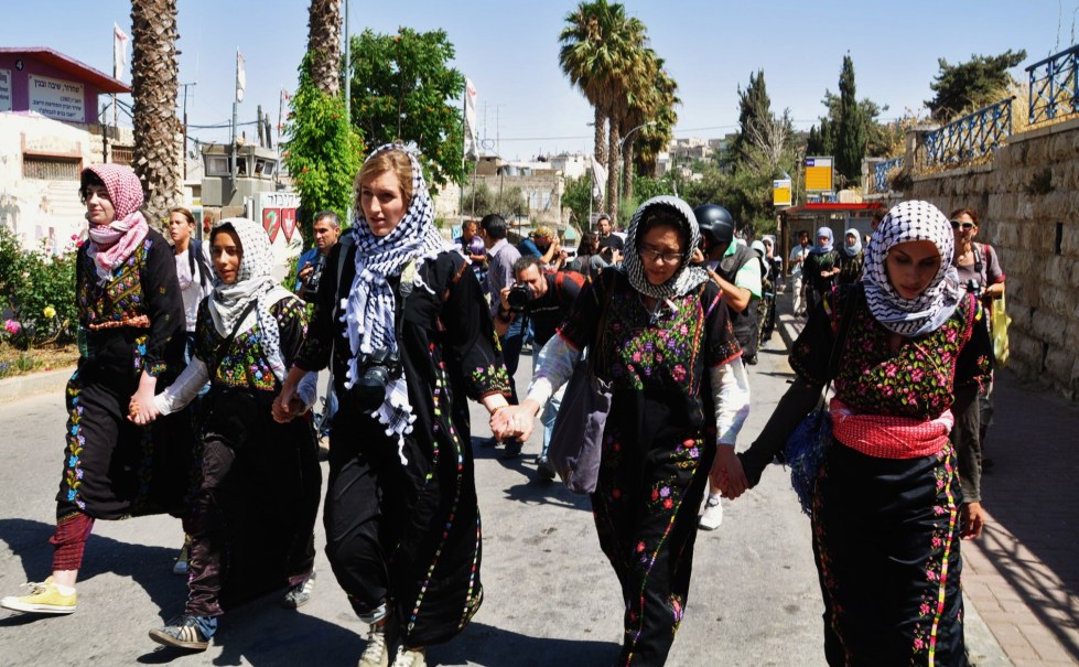 All in all, three of the women were arrested as a result of their nonviolent action of walking on a street, dressed as Palestnians.