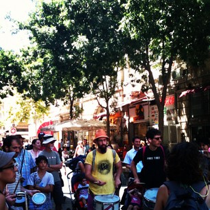 At a demonstration, Friday afternoon (surprise). We are passing out fliers, accompanied by the drums of Yassamba (see above). The fliers decry our government’s latest plans of gut-wrenching injustice towards Palestinians (ibid). The crowd in Zion Square, downtown Jerusalem, is largely bemused, some are angry (…).