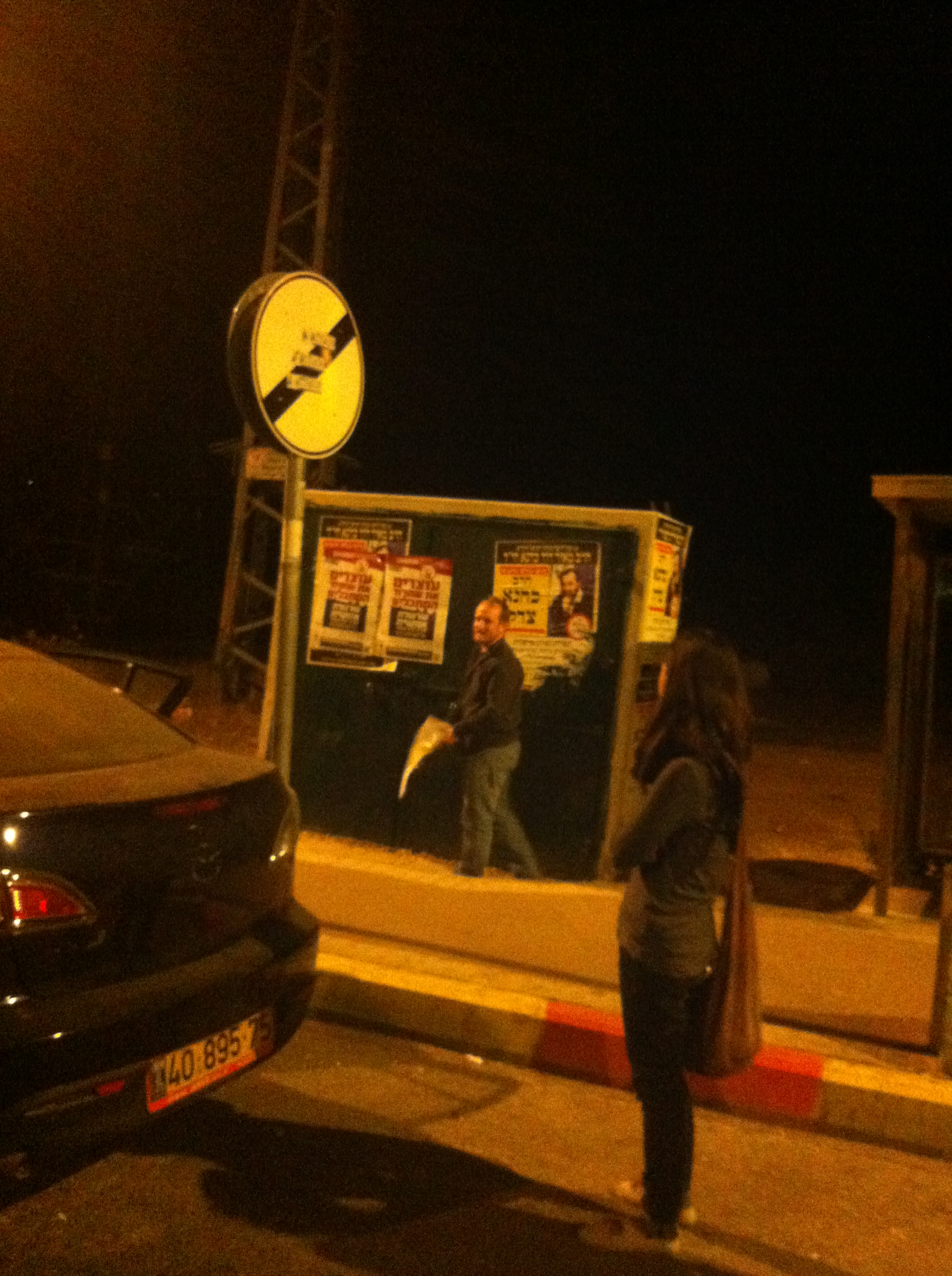 There were some fun moments here and there last time I was in jail, but it was radically different to be there with six others. More than that, soon after we were sent to the cage, we were allowed to see Emily, lawyer and All That’s Leftist extraordinaire who had been accompanying us the whole time. She told us that things were going to be fine, that we would probably be released within hours– and that Zehava Gal-On (Meretz MK) had been making some calls to ensure that things go well. More than that, Emily told us that activists from Jerusalem were aware of the case, and willing to come pick us up- and that they had called Palestinian friends who lived near the police station and were waiting outside to bring us jackets gathered from their family members.