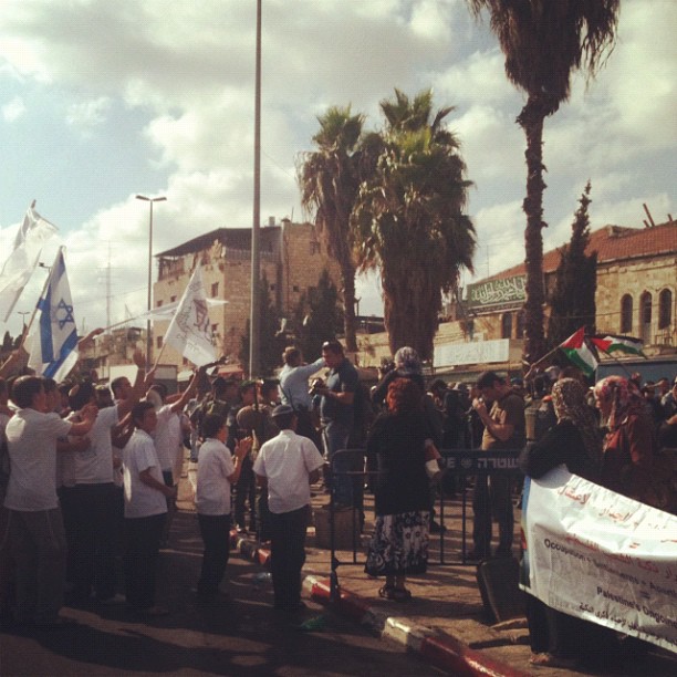 A story: Jerusalem Day, 2012. I am standing at the Damascus Gate, before the Israeli parade has made its way from West Jerusalem into the occupied parts of the city to celebrate “reunification.” I am watching two small demonstrations, separated by a police barrier. On one side, there is a group of young Israelis, mostly teenagers. They are waving Israeli flags, and their veins are bulging as they scream “Mavet LaAravim! Mavet LaAravim!” Death to Arabs! Death to Arabs! On the other side, there is a group of young Palestinian men, and they are also chanting and waving Palestinian flags, their fists clenched and their shouts filled with testosterone, “Khaybar Khaybar ya Yehud!” A reference to an incident in the 7th century in which Muslims forcibly expelled the Jews of Khaybar. And I think: they are so similar. We are so similar. We are all swept up in self-righteousness, we are all afraid and violent and capable of wishing expulsion and death on the other side.
