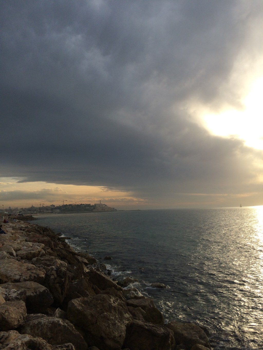 Once safely ensconced in the bus, the driver gladly obliges the request to turn the music up and Arabic pop washes over us in waves as we rumble through the streets of Tel Aviv. The air inside the bus turns electric with excitement, everyone alternately whispering and shouting the same word over and over as it becomes a sort of chant: the sea, the sea.